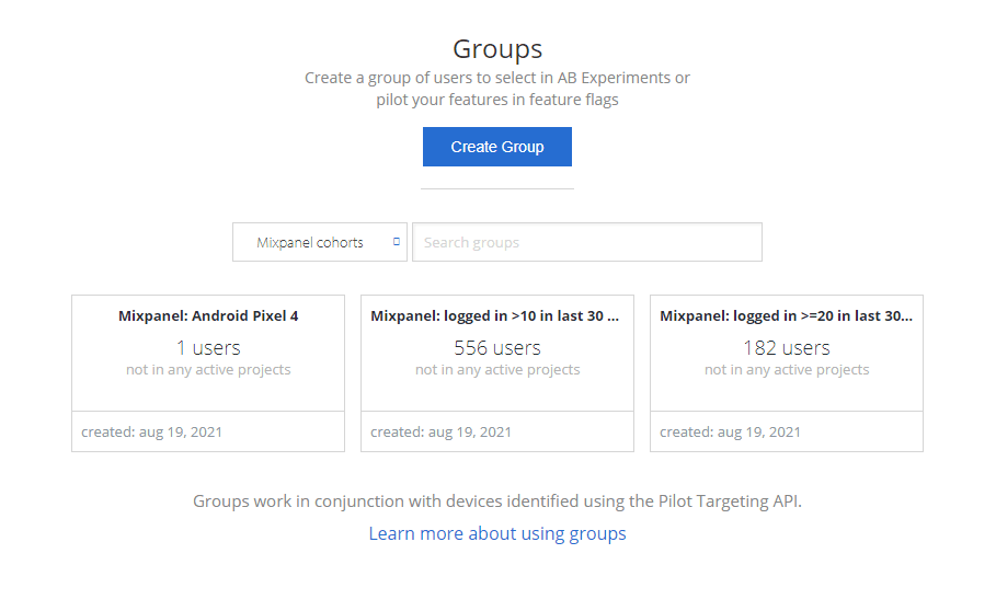 Once the export completes, you will see your cohorts appear in your Apptimize Groups page.